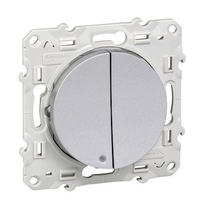 Odace, va-et-vient + va-et-vient lumineux Alu, 10 A, à vis, LED orange 1,5 mA