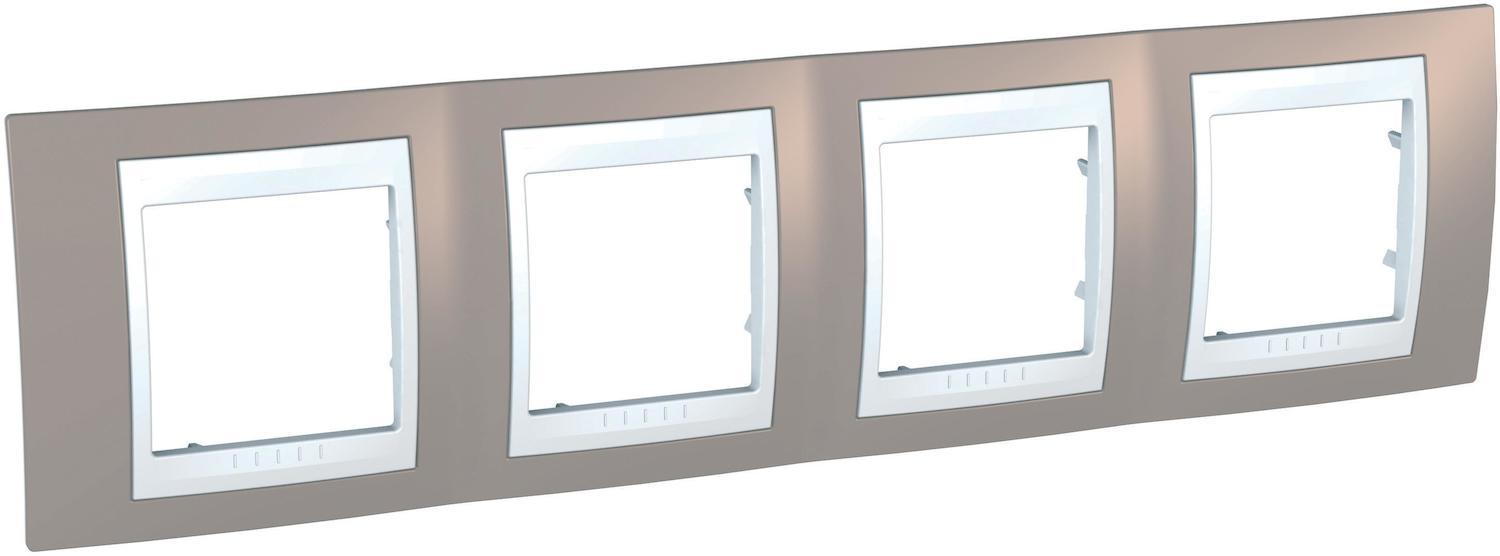 Unica - plaque de finition - 4 postes hor. 71mm 8 mod. - vison liseré blanc
