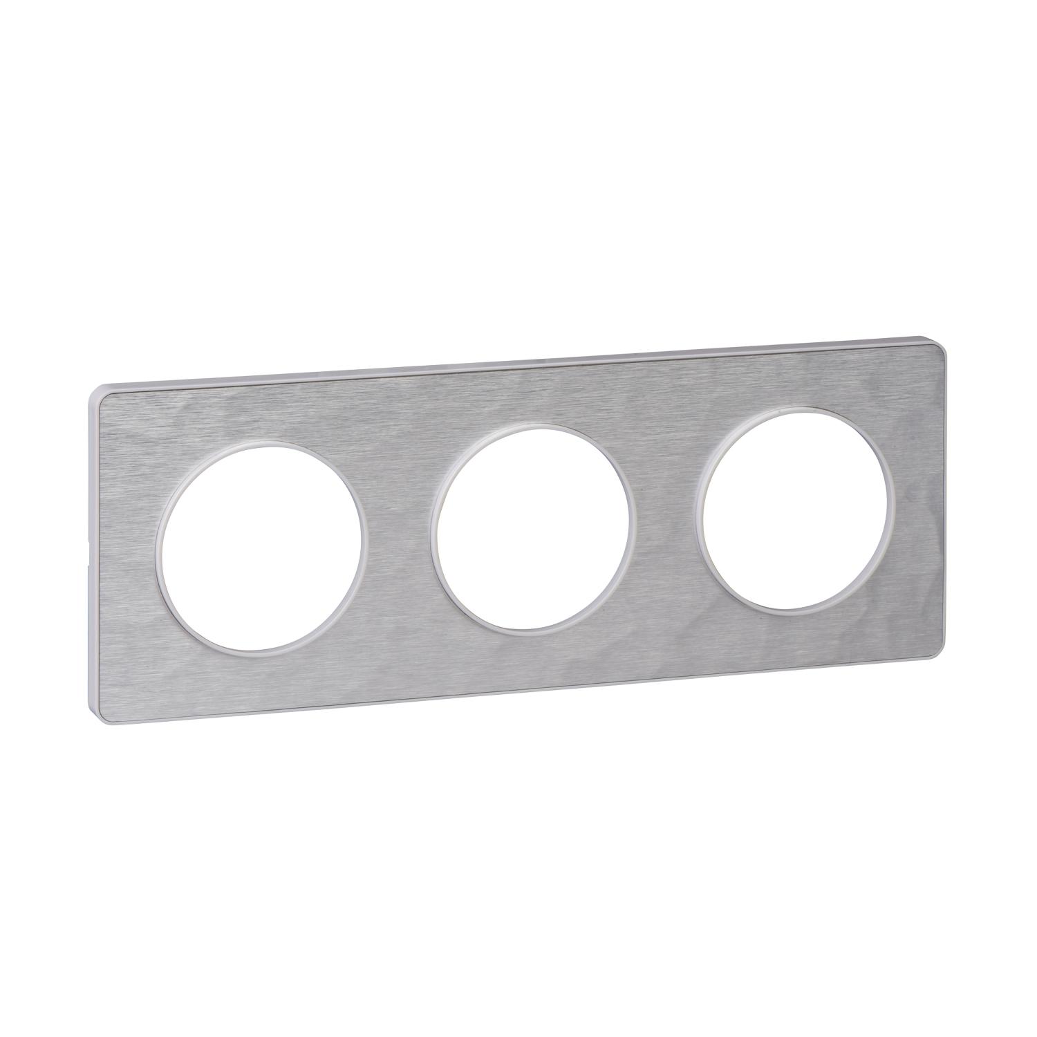 Odace Touch, plaque Aluminium martelé liseré Blanc 3 postes horiz./vert. 71mm