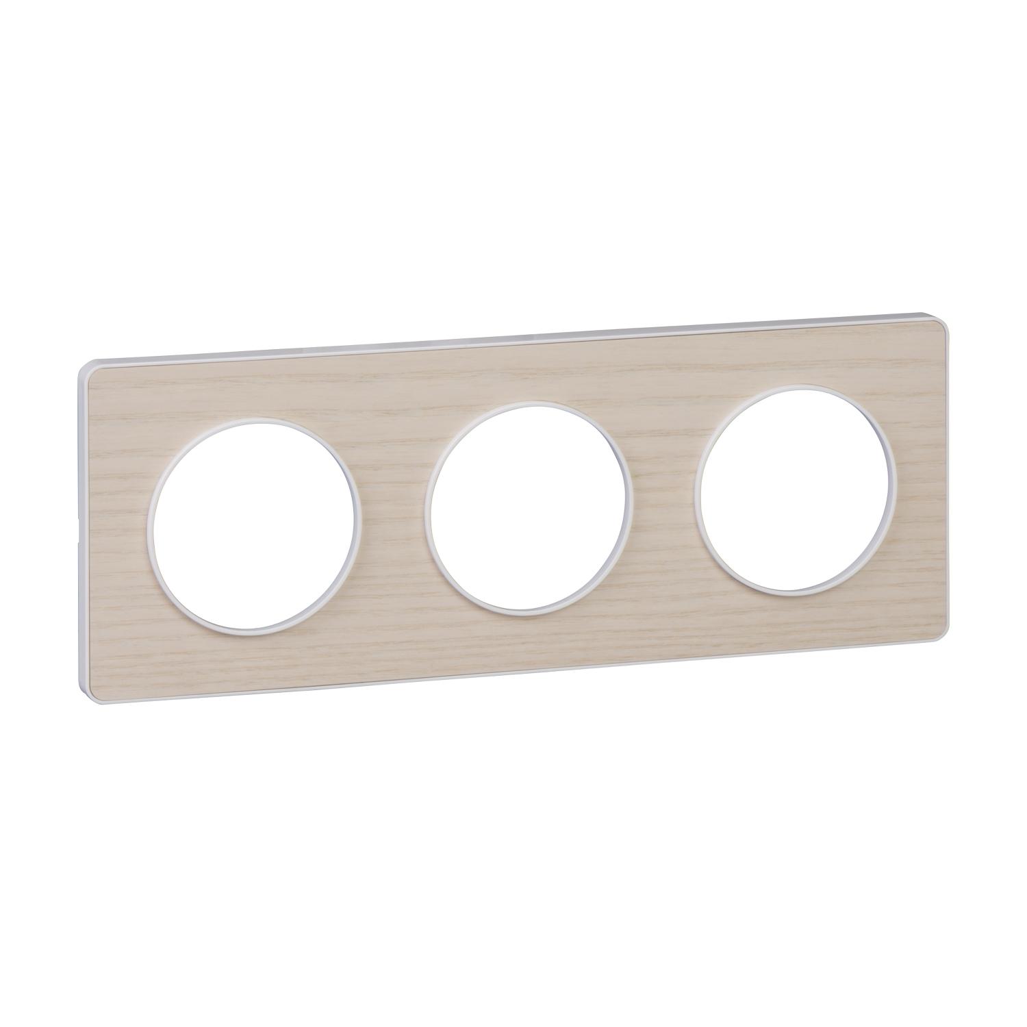 Odace Touch, plaque Bois nordique liseré Blanc 3 postes horiz./vert. 71mm