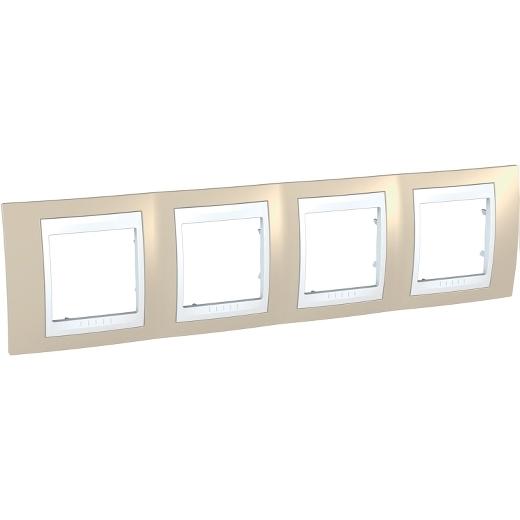 Unica - plaque de finition - 4 postes hor. 71mm 8 mod. - sable liseré blanc