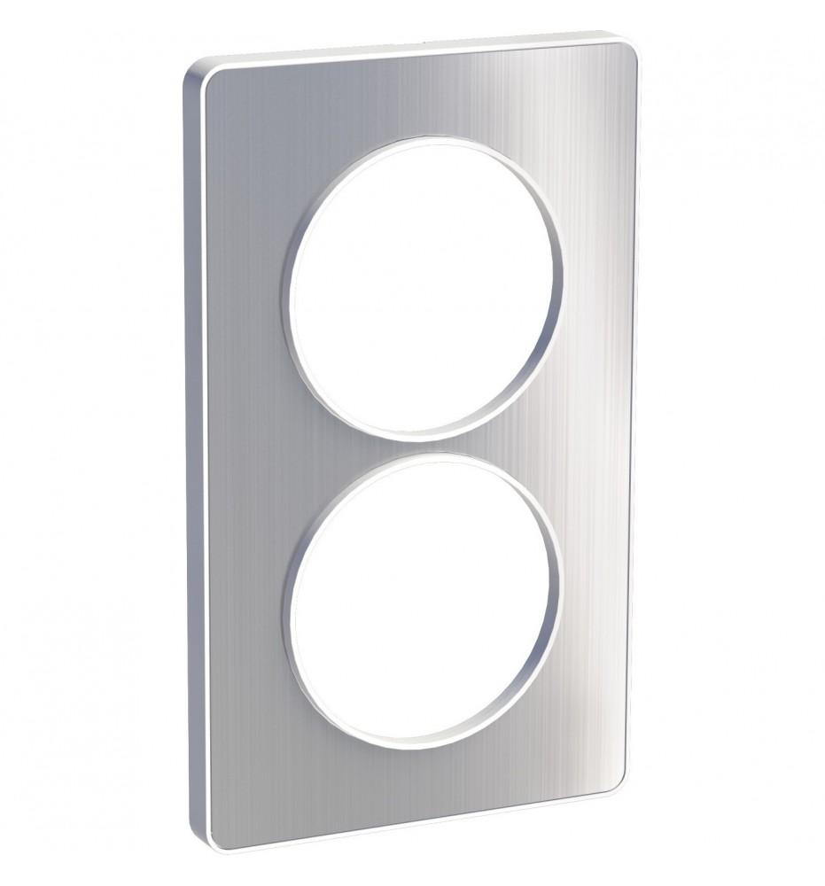 Odace Touch, plaque Aluminium brossé avec liseré Blanc 2 postes verticaux 57mm