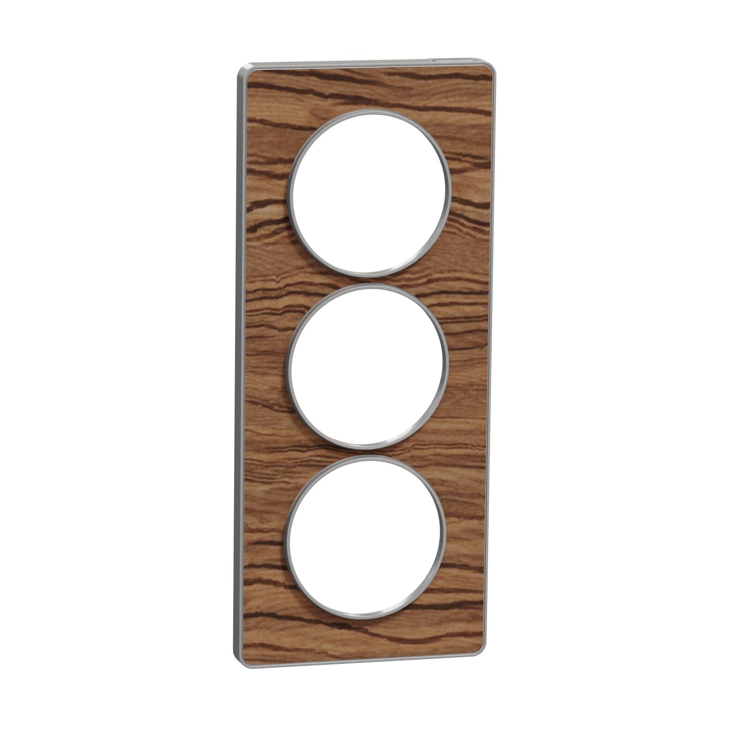 Odace Touch, plaque Wenge avec liseré Alu 3 postes verticaux entraxe 57mm