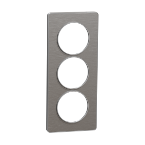 Odace Touch, plaque Aluminium brossé liseré Alu 3 postes verticaux entraxe 57mm