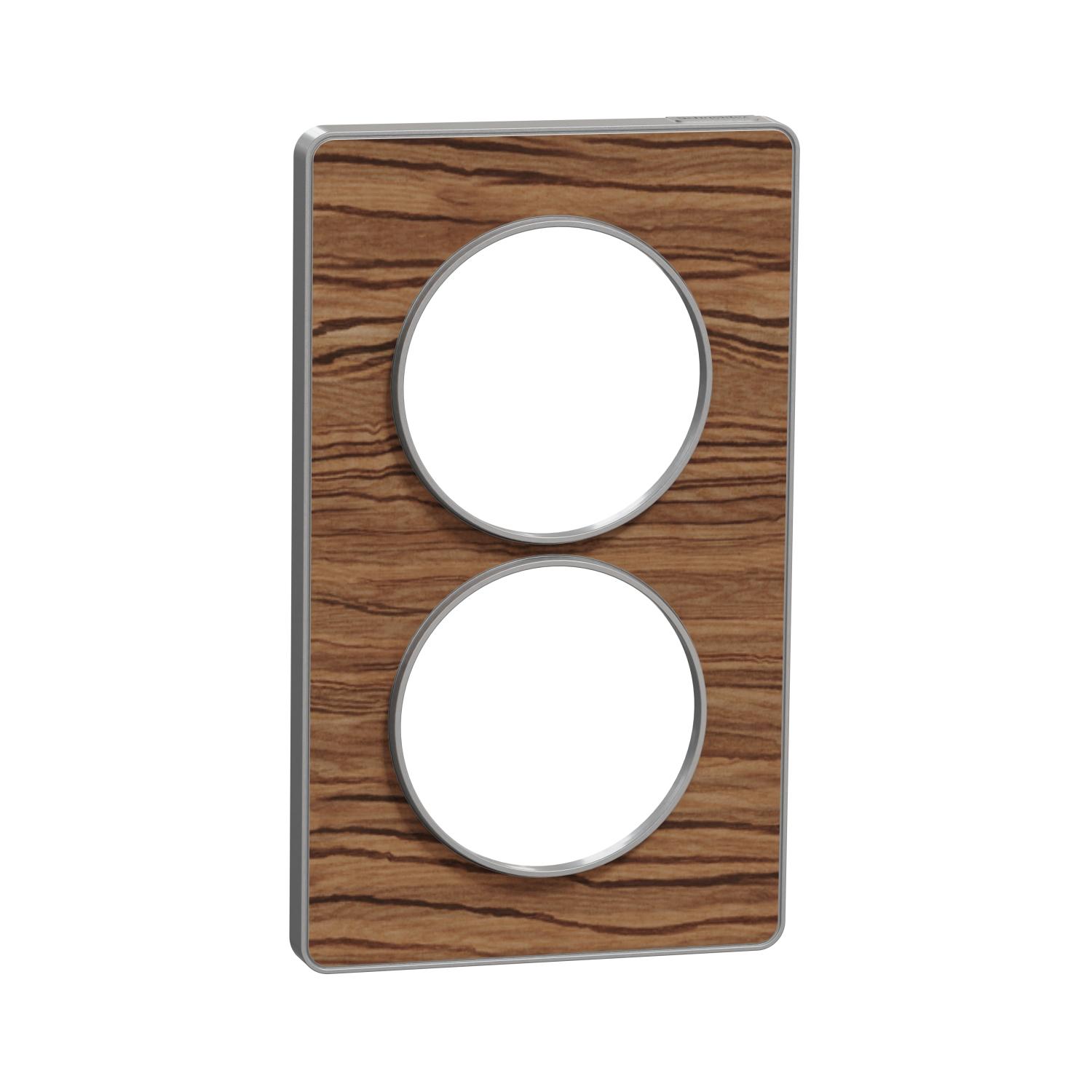 Odace Touch, plaque Wenge avec liseré Alu 2 postes verticaux entraxe 57mm
