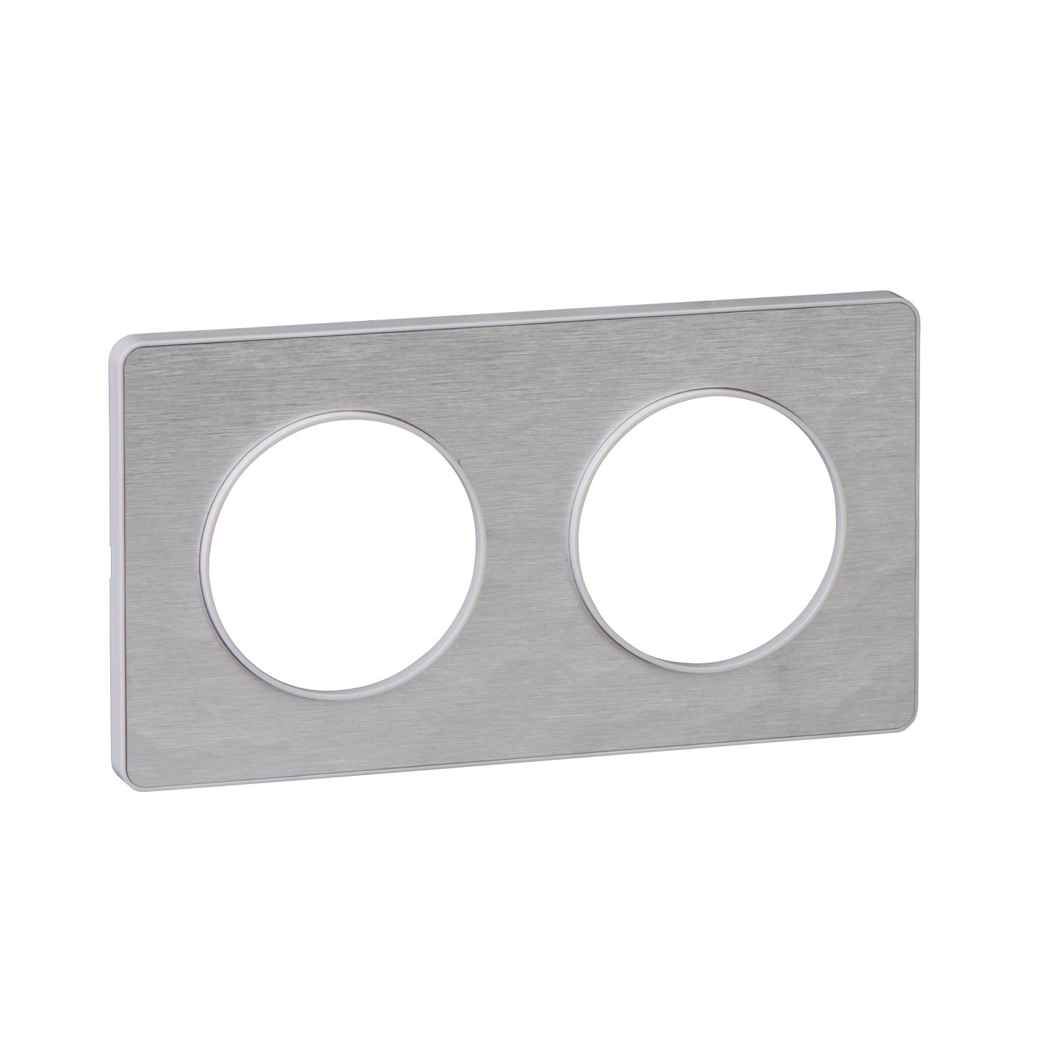 Odace Touch, plaque Aluminium martelé liseré Blanc 2 postes horiz./vert. 71mm